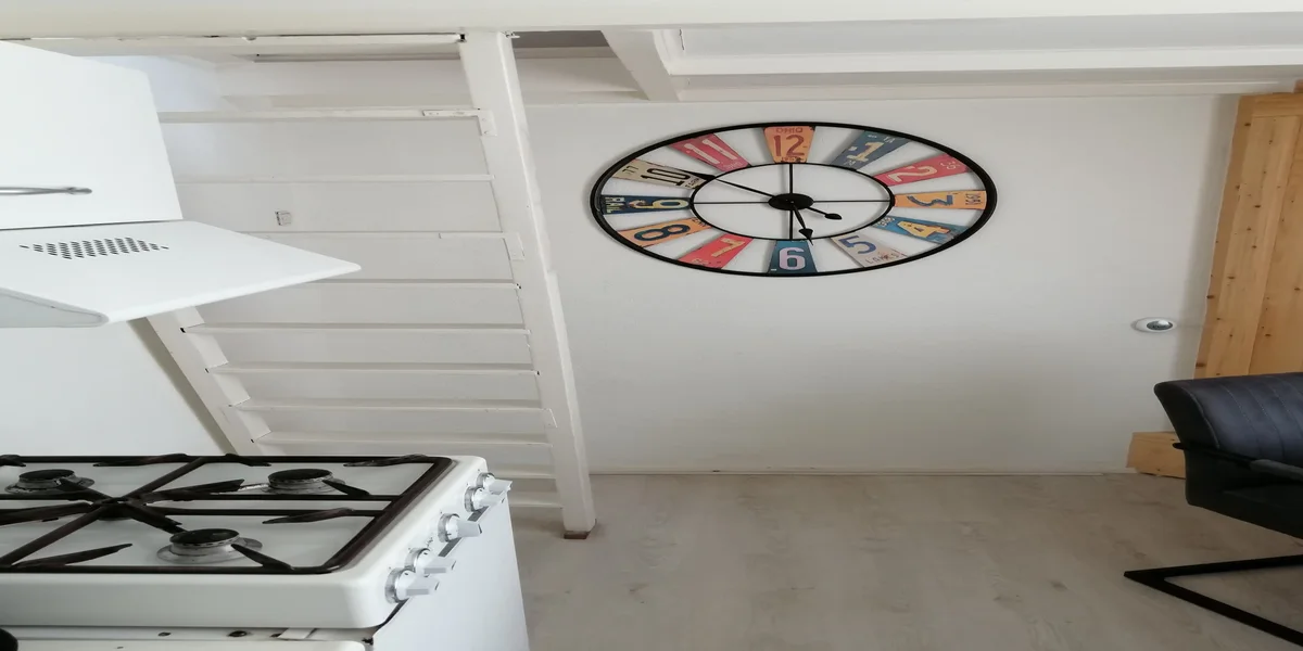 Das Sommerhaus befindet sich in der Koningin Emmastraat in Katwijk aan Zee, ideal gelegen in Gehdistanz von Einkaufszentrum, Strand und Meer. Die Eingangsbereich des Sommerhauses führt ins Wohnzimmer mit einer offenen Küche und ins Badezimmer. Das Wohnzimmer ist mit einem Laminatboden und einem Gasofen ausgestattet. Die offene Küche ist mit Kühlschrank, einem Gasherd und Dampfabzug ausgestattet. Küchenutensilien sind vorhanden sowie auch eine Senseo Kaffeemaschine und ein Wasserkocher.