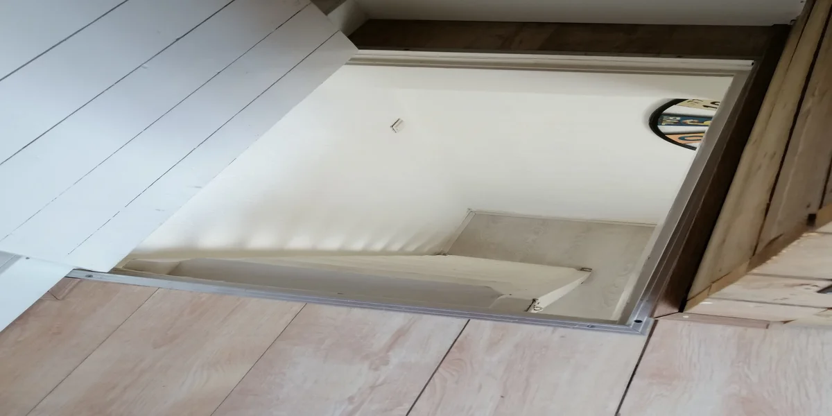 Dieses ist mit einem Doppelbett und Platz zum Aufhängen von Kleidung ausgestattet.